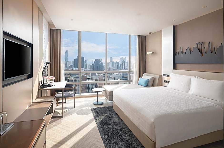 This spacious suite comes with 1 bedroom, a seating area and 1 bathroom with a walk-in shower and a bath. The air-conditioned suite features a flat-screen TV with cable channels, a mini-bar, executive lounge access, a dining area as well as city views. The unit has 1 bed.
